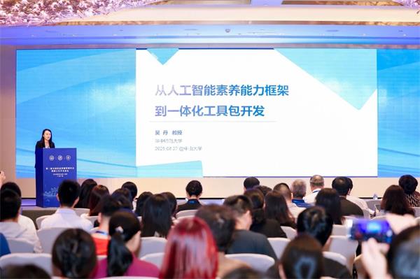 华中师范大学吴丹教授作题为《从人工智能素养能力框架理论到一体化工具包开发》的主旨报告