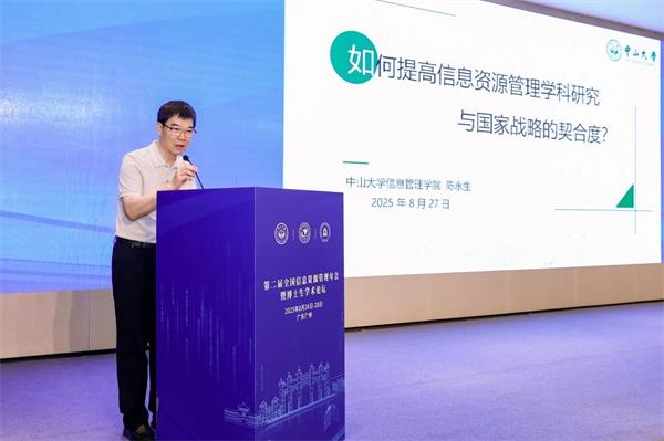 中山大学陈永生教授作题为《如何提高信息资源管理学科研究与国家战略的契合度》的主旨报告