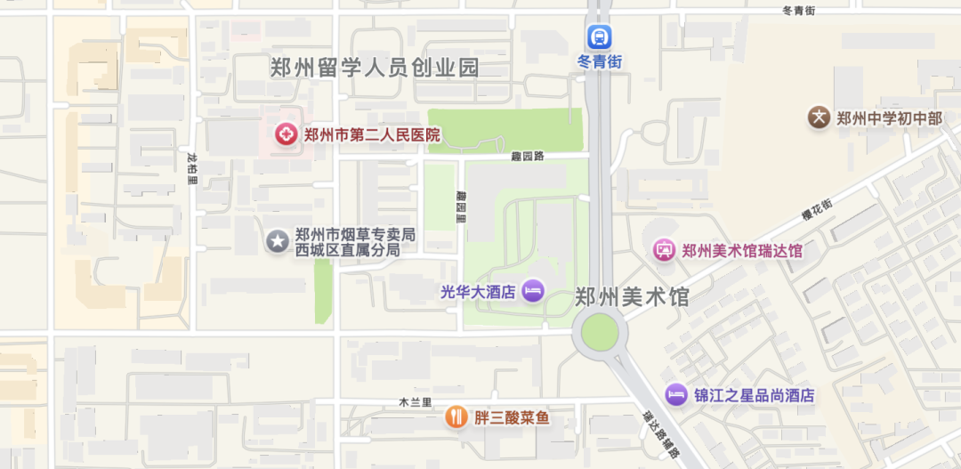 公共交通:地铁1号线郑州火车站上车,往河南工业大学方向乘坐12站到郑州大学站,站内换乘8号线,往鲁庙方向乘坐2站到冬青街,B口出站后向南步行约400米即到,全程约60分钟,费用4元。