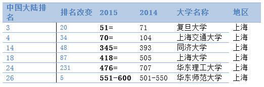 表二:《2015QS世界大学排名》,中国大陆30所世界一流大学上榜学校(上海6所)